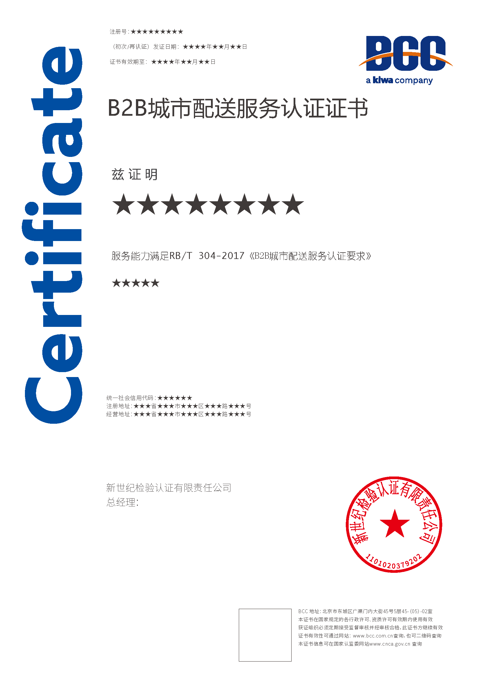 本頁涉及的認證服務(wù)中均有對應(yīng)的《認證實施規(guī)則》,BCC擁有其最終解釋權(quán)。任何組織及個人未經(jīng)BCC許可,不得以任何形式全部或部分使用(法律要求除外)認證相關(guān)信息。如需獲取相關(guān)實施規(guī)則請用以下方式聯(lián)系獲取:電話:010-58579316 郵箱:fwjs@kiwa.cn