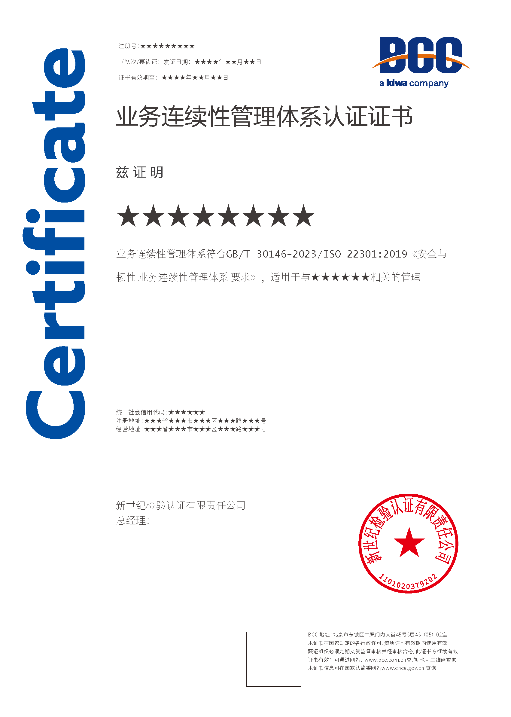 - 2021-03-03 09:34:09 BCC獲得業(yè)務(wù)連續(xù)性管理體系CNAS認可資格
